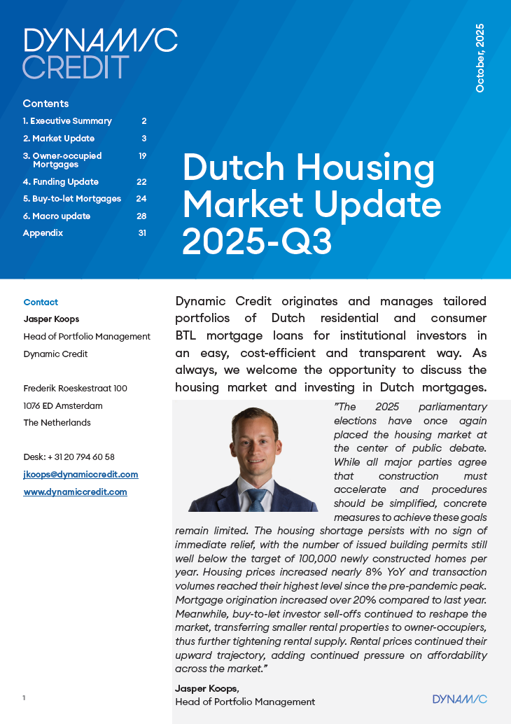 The 2025 parliamentary elections have once again placed the housing market at the center of public debate. While all major parties agree that construction must accelerate and procedures should be simplified, concrete measures to achieve these goals remain limited. The housing shortage persists with no sign of immediate relief, with the number of issued building permits still well below the target of 100,000 newly constructed homes per year. Housing prices increased nearly 8% YoY and transaction volumes reached their highest level since the pre-pandemic peak. Mortgage origination increased over 20% compared to last year. Meanwhile, buy-to-let investor sell-offs continued to reshape the market, transferring smaller rental properties to owner-occupiers, thus further tightening rental supply. Rental prices continued their upward trajectory, adding continued pressure on affordability across the market.